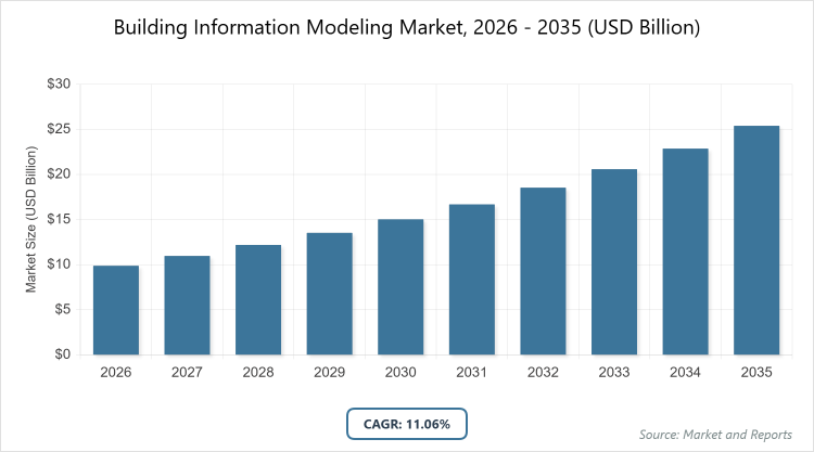 According to MarketnReports, the global Building Information Modeling market size was estimated at USD 9.88 billion in 2025 and is expected to reach USD 28.2 billion by 2035, growing at a CAGR of 11.06% from 2026 to 2035. Increasing demand for digital construction and sustainability in building projects.