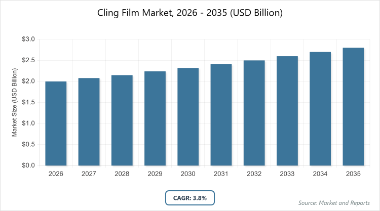 According to MarketnReports, the global Cling Film market size was estimated at USD 2.0 billion in 2025 and is expected to reach USD 2.9 billion by 2035, growing at a CAGR of 3.8% from 2026 to 2035. The Cling Film Market is driven by increasing demand for convenient food packaging solutions in households and the foodservice industry.