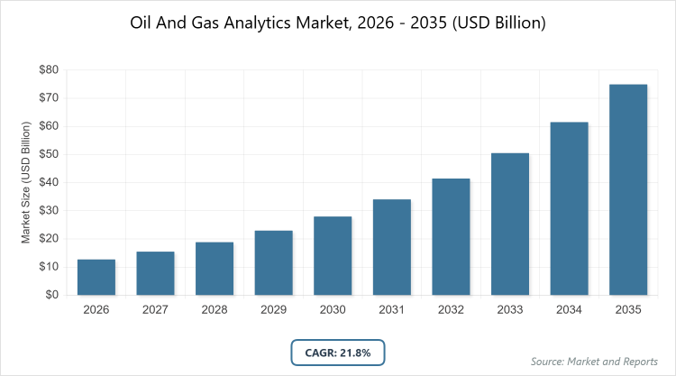 According to MarketnReports, the global Oil And Gas Analytics market size was estimated at USD 12.7 billion in 2025 and is expected to reach USD 91.25 billion by 2035, growing at a CAGR of 21.8% from 2026 to 2035. The Oil And Gas Analytics Market is driven by the increasing adoption of AI and big data for operational efficiency in the energy sector.