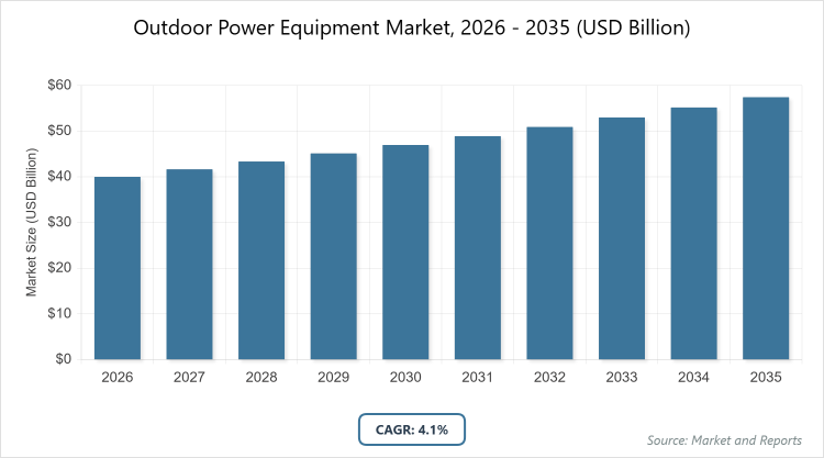 According to MarketnReports, the global Outdoor Power Equipment market size was estimated at USD 40 billion in 2025 and is expected to reach USD 60 billion by 2035, growing at a CAGR of 4.1% from 2026 to 2035. Outdoor Power Equipment Market is driven by the increasing demand for landscaping services and the shift toward battery-powered tools.