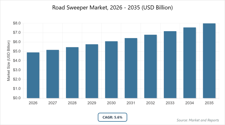 According to MarketnReports, the global Road Sweeper market size was estimated at USD 4.89 billion in 2025 and is expected to reach USD 8.78 billion by 2035, growing at a CAGR of 5.6% from 2026 to 2035. Road Sweeper Market is driven by rapidly growing urbanization worldwide.