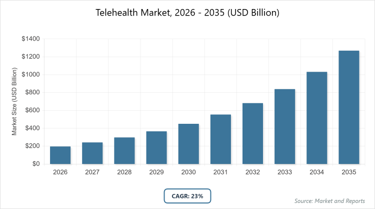 According to MarketnReports, the global Telehealth market size was estimated at USD 197 billion in 2025 and is expected to reach USD 1367 billion by 2035, growing at a CAGR of 23% from 2026 to 2035. Telehealth Market is driven by increasing demand for remote healthcare services and technological advancements.