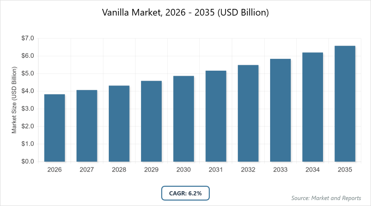 According to MarketnReports, the global Vanilla market size was estimated at USD 3.83 billion in 2025 and is expected to reach USD 7.0 billion by 2035, growing at a CAGR of 6.2% from 2026 to 2035. Vanilla Market is driven by rising consumer preference for natural and organic ingredients across food, beverage, and personal care sectors.